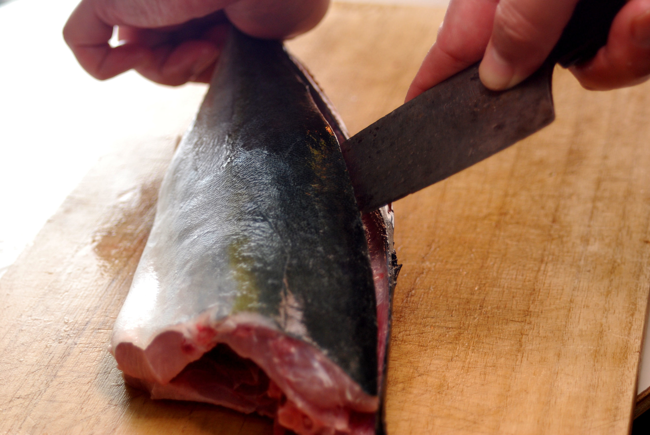 水洗いまで終えたので、いよいよ三枚おろしに入ります。